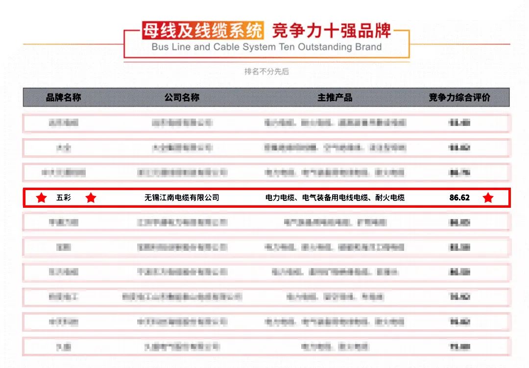 Jiangnan Cable Ranking